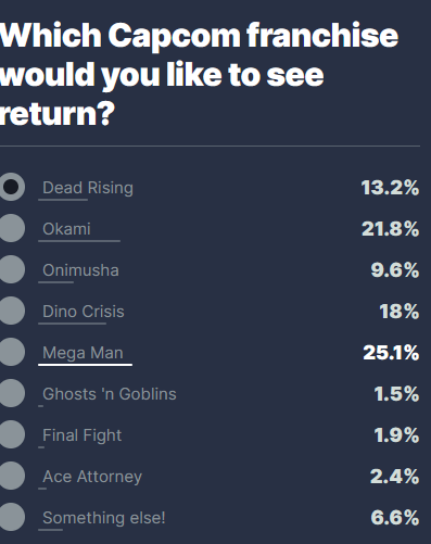 3개를 고를 수 있는데, 고민 좀 하다가 어차피 투표 안 해줘도 나올 게임들은 제외하고...록맨, 오오카미, 브레스 오브 파이어를 찍어줬습니다. 뱀파이어 신작도 보고 싶었지만 미안 ㅠㅠ