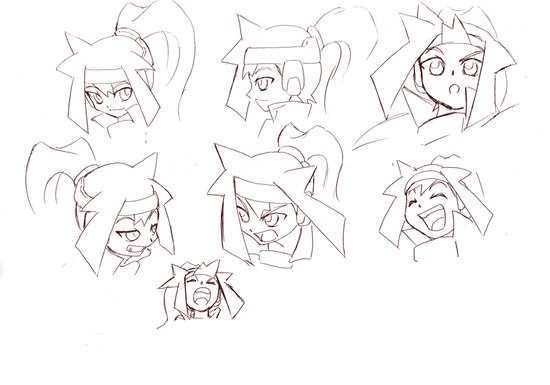 야베 : 그녀의 이미지는 "사냥하는 들고양이" 성장한 반과 어깨를 나란히 하게 될거니까, 귀여운 여동생 뻘로 설정해버리면 인상이 약해지니 강한 여성으로 정했습니다. 거기서 존재감을 보여주고 싶어서, 엘보다 포니테일이나 체형 등을 볼륨감 있는 디자인으로 만들었습니다. 그레이, 애시 두 주인공 모두, 『젝스』의 성장한 주인공 캐릭터들과 나란히 섰을 때, 확실하게 대비되며 빛날 수 있도록 의식하며 디자인했습니다.