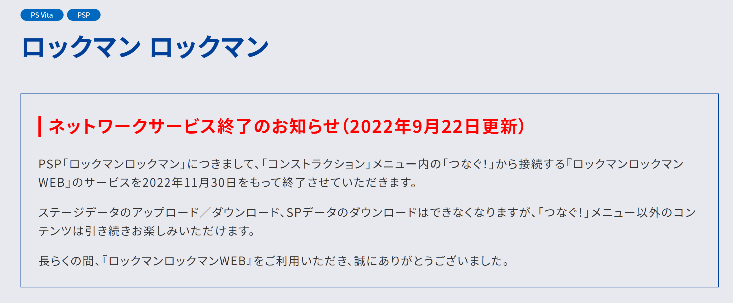 되묻지 않을까 싶네요 😅 저도 몇 년전에 아직도 접속 가능하다는 사실을 알고 놀랐던 적이 있는데, 결국 이렇게 역사의 뒤편으로 사라질 날이 와버렸군요. 사실 여지껏 서비스를 계속 해줬다는 것만으로도 대단하긴 합니다. 록맨록맨이 무슨 대히트작도 아니고 시리즈 역사에 손꼽힐만한 실패작인데도 이렇게 편의를 봐줬으니까 말이죠. 그냥 잊어먹고 있던 게 아닌가 싶기도 하고